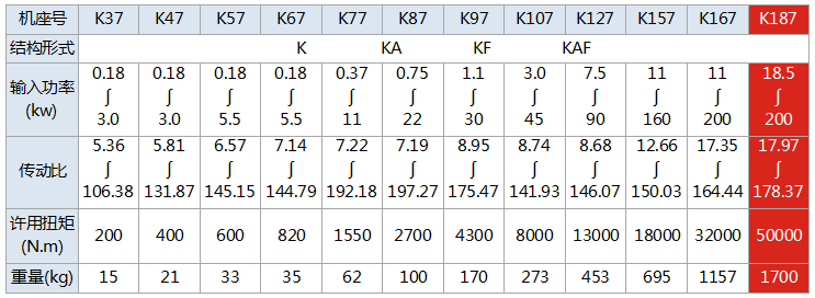 K系列減速機(jī),結(jié)合國際技術(shù)要求制造,具有很高的科技含量,節(jié)省空間,可靠耐用, 承受過載能力高,功率可達(dá)200Kw,能耗低,性能優(yōu)越,減速機(jī)效率高達(dá)95%以上,振動小,噪音低,節(jié)能高,選用優(yōu)質(zhì)鍛鋼材料,鋼性躊鐵箱體,齒輪表面 經(jīng)過滲碳淬火,經(jīng)過精密加工,構(gòu)成了斜齒輪、傘齒輪,錐齒輪傳動總成的減速機(jī)。